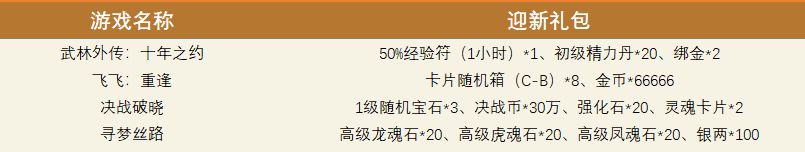 各专区「迎新礼包」如下图,及时前往领取!