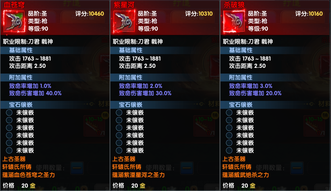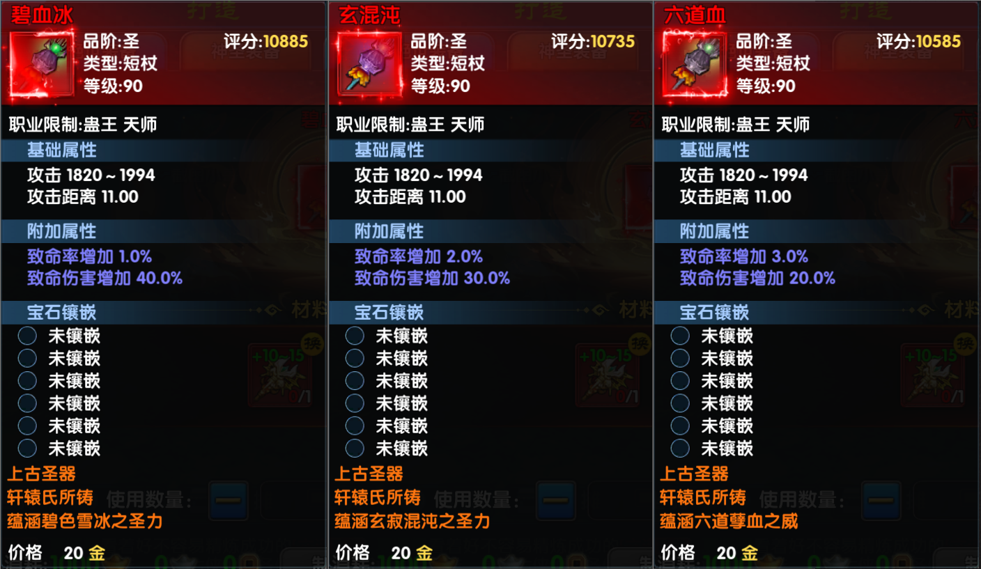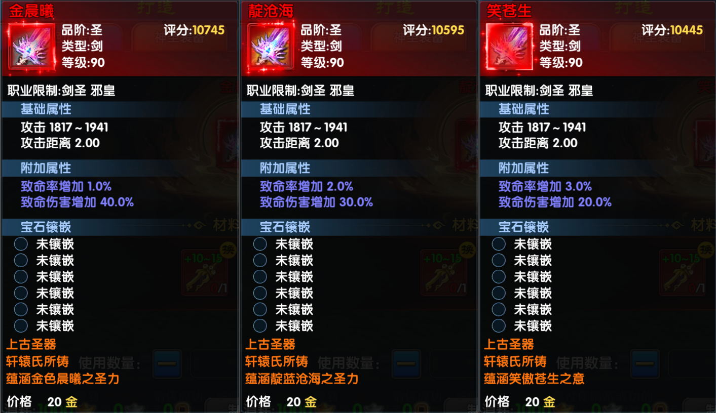 1、圣武通过打造获得,通过将本职业任意90且强化+10及以上的绝世武器(血/攻)加10个圣武碎片进行打造获取。打造出来的圣武固定为非绑定的,打造成功后,材料装备的精炼等级、镶嵌等级和宝石都不会继承;