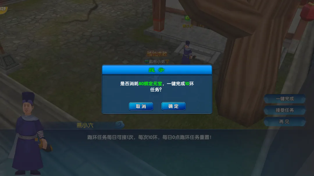 注:一键快捷完成优先使用绑元,绑元不足时使用元宝。