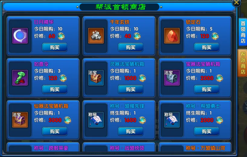 2、主要产出新法宝部件、法宝材料资源、特殊称号资源。