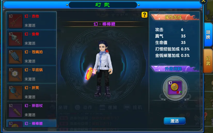 2、激活方式同翅膀,使用指定道具激活武器幻化外形;
