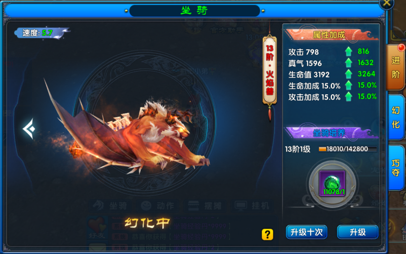 2、进阶类型坐骑增加13阶;